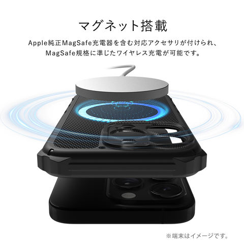 Apple純正MagSafe充電器を含む対応アクセサリが付けられ、MagSafe規格に準じたワイヤレス充電が可能です。