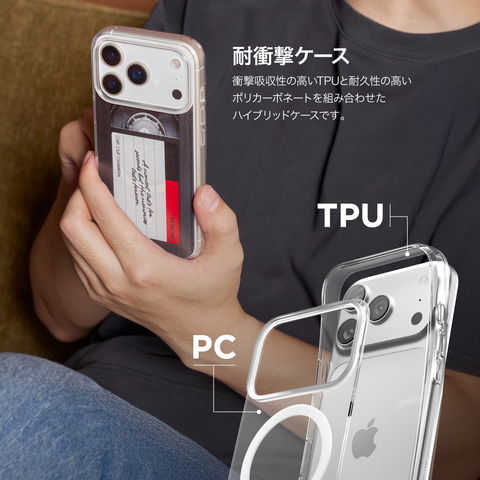 衝撃吸収性の高いTPUと耐久性の高いポリカーボネートを組み合わせたハイブリッドケースです。