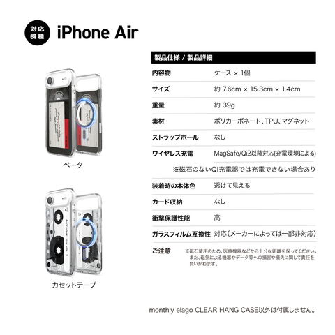 iPhone Air ケース MagSafe 対応 耐衝撃 クリア スマホケース おしゃれ デザイン iPhoneAir アイフォンエアー 対応 elago monthly elago MAGNETIC HYBRID CASE