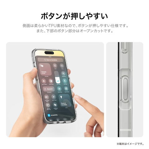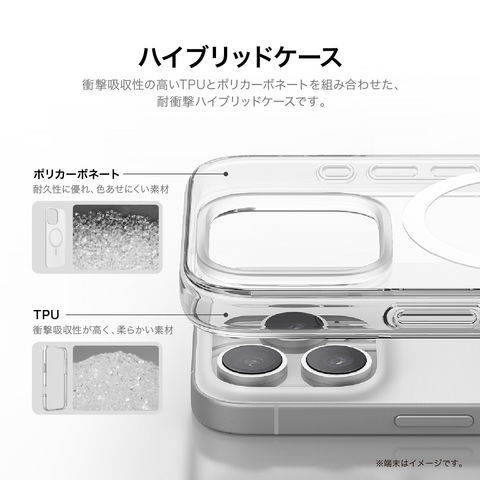 衝撃吸収性の高いTPUとポリカーボネートを組み合わせた、耐衝撃ハイブリッドケースです。