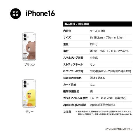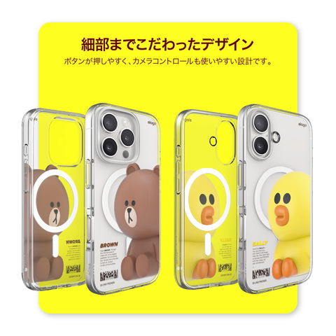 iPhone 16 ケース ラインフレンズ 公式ライセンス クリア MagSafe対応 スマホケース iPhone16 アイフォン 16 対応 elago LINE FRIENDS Brown & Sally