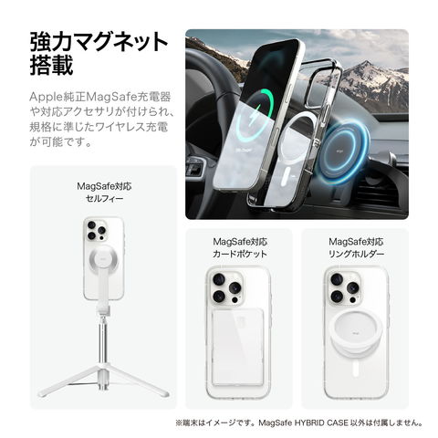 Apple純正MagSafe充電器や対応アクセサリが付けられ、規格に準じたワイヤレス充電が可能です。
