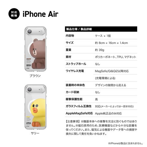 iPhone Air ケース MagSafe 対応 ラインフレンズ 公式 ライセンス 耐衝撃 スマホケース iPhoneエアー iPhoneAir 対応 elago LINE FRIENDS Brown & Sally