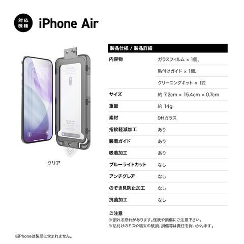 iPhone Air ガラスフィルム 気泡防止 9H ガラス 保護フィルム ラウンドエッジ フィルム iPhoneAir アイフォンエアー 対応 elago TEMPERED GLASS PROTECTOR