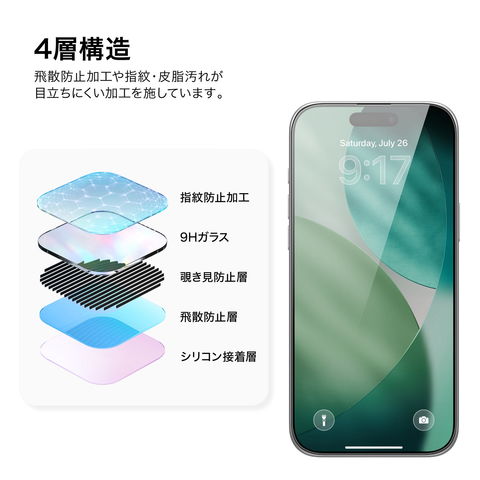 iPhone Air ガラスフィルム 覗き見防止 9H ガラス 気泡防止 保護フィルム プライバシー フィルム iPhoneAir アイフォンエアー 対応 elago PRIVACY GLASS