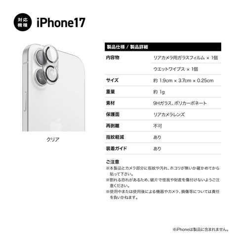 iPhone 17 カメラ保護 フィルム 指紋 傷 防止 カメラカバー 9H ガラス レンズカバー iPhone17 アイフォン17 対応 elago CAMERA LENS PROTECTOR