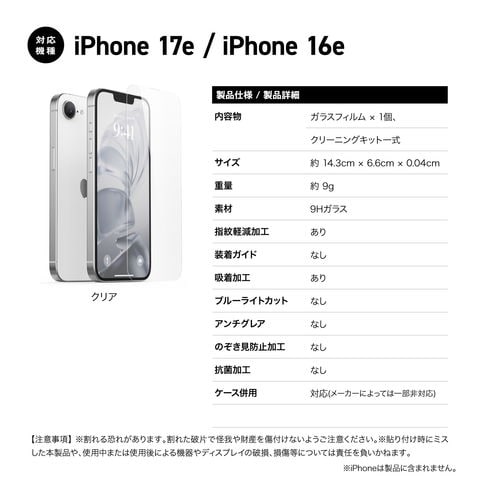 iPhone 17e iPhone 16e フィルム 気泡防止 9H ガラスフィルム iPhone17e iPhone16e アイフォン17e アイフォン16e 対応 elago TEMPERED GLASS PROTECTOR