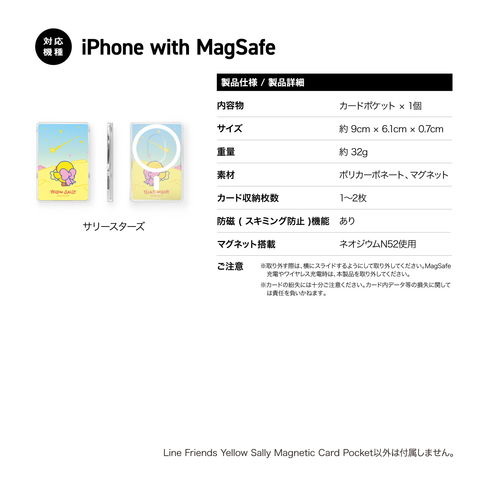 MagSafe カードケース ラインフレンズ 公式 ライセンス マグセーフ カード入れ iPhone スマホ 対応 elago Line Friends Yellow Sally Magnetic Card Pocket