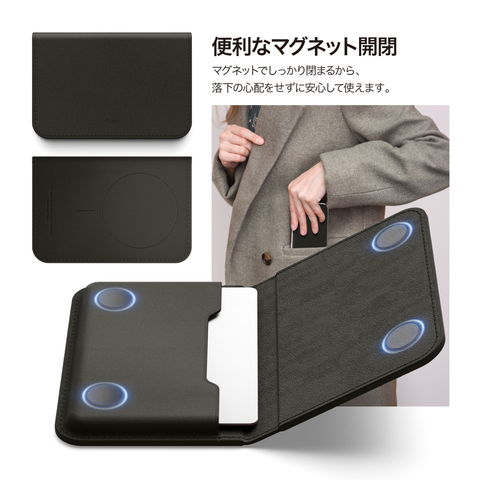 MagSafe対応の端末やケースに貼付けることができます。マグネット式なのでいつでも取り外し可能です。