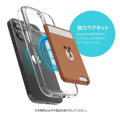 MagSafe対応の端末やケースにしっかり貼り付くカードポケットです。※充電時は必ず本製品を取り外してください。