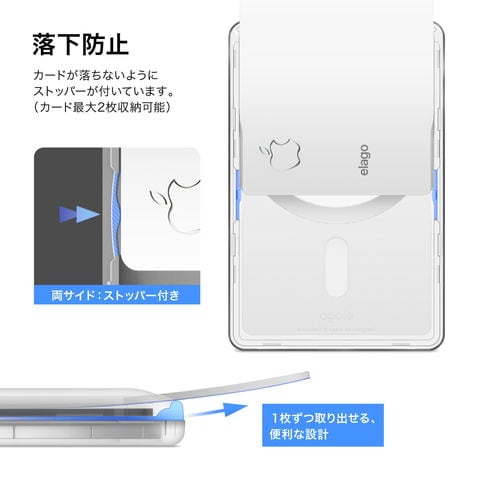 MagSafe カードケース カード 収納 ポケット 薄型 透明 マグセーフ カード入れ マグネット 内蔵 カードホルダー iPhone スマホ 対応 elago MAGNETIC CARD SLIDER
