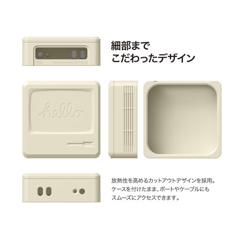 レトロなパソコンを彷彿させるようなオシャレなデザインのケースです。