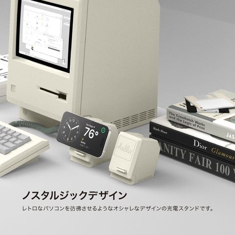 レトロなパソコンを彷彿させるようなオシャレなデザインの充電スタンドです。