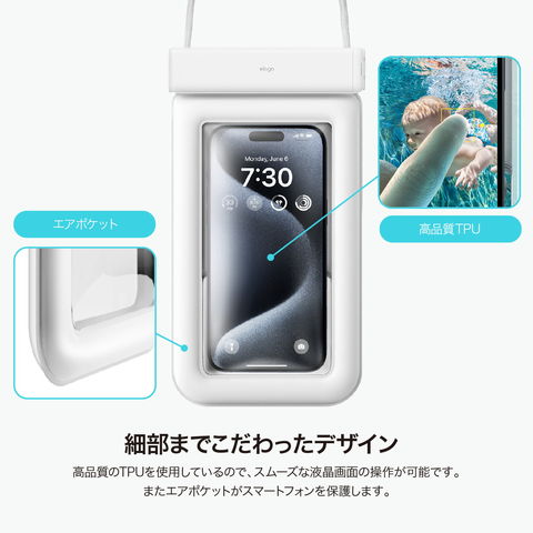 スマホ ストラップ 付き 防水ケース お風呂 / 海 / プール 落下防止 ネックストラップ 防水 ポーチ 首掛け スマホポーチ 対応 elago WATERPROOF PHONE POUCH