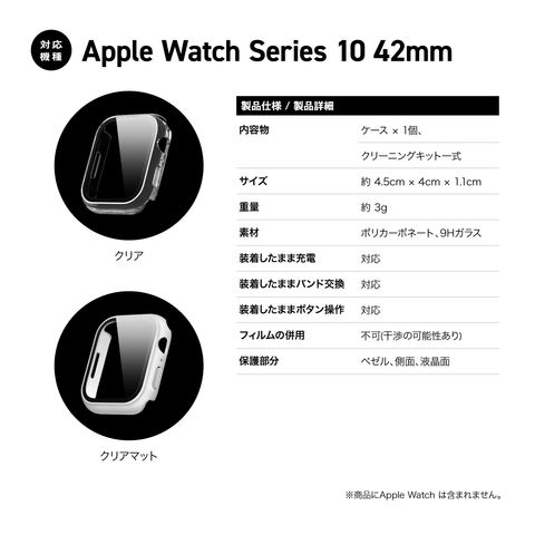耐久性の高いポリカーボネートを使用し、Apple Watchを傷や汚れからしっかり保護します。