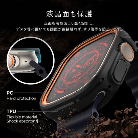 ポリカーボネートとTPUの2層構造で、Apple Watchをしっかり保護できるケースです。