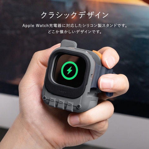 Apple Watch充電器に対応したシリコン製スタンドです。どこか懐かしいデザインです。