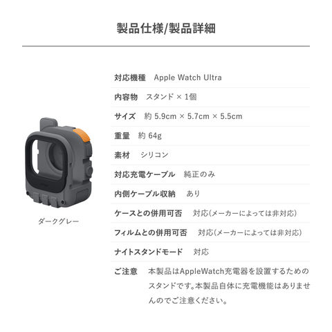 Apple Watch Ultra スタンド シリコン 製 充電ドック ナイトスタンドモード 対応 Apple AppleWatch Ultra アップルウォッチウルトラ 49 mm 対応 elago W10 STAND