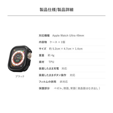 Apple Watch Ultra 49 mm ケース 耐衝撃 軽い シンプル 保護ケース ソフト TPU カバー AppleWatchUltra アップルウォッチウルトラ 49mm 対応 elago ARMOR CASEのレビュー