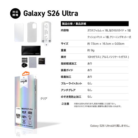 Galaxy S26 Ultra フィルム 超簡単 ガイド付き 10H ガラスフィルム Samsung GalaxyS26Ultra ギャラクシーS26 Ultra SM-S948Q SC-53G 対応 Corallo easy10