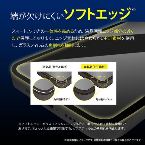 本製品は、欠けやすいガラスフィルムのエッジに、PET製フレームを使用し、太陽光や蛍光灯などの反射や、ディスプレイの写り込みを防止する機能を持つ、多機能ガラスフィルムです。 ※本製品は薄い乳白色を帯びていますが、製品の仕様となります。画面に貼ると目立ちにくくなります。