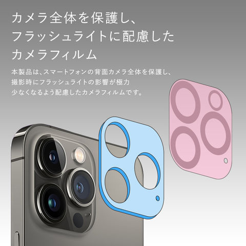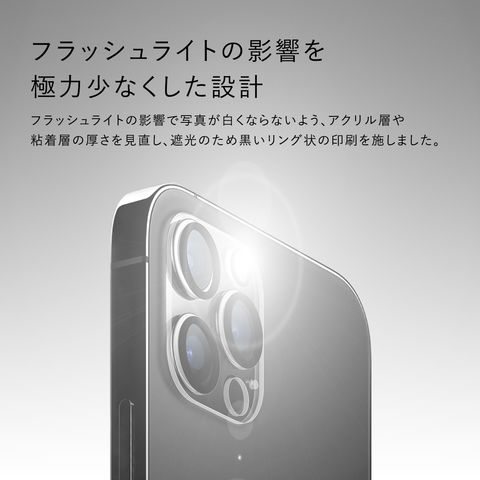 本製品は、スマートフォンの背面カメラ全体を保護し、撮影時にフラッシュライトの影響を極力少なくしても配慮したカメラフィルムです。