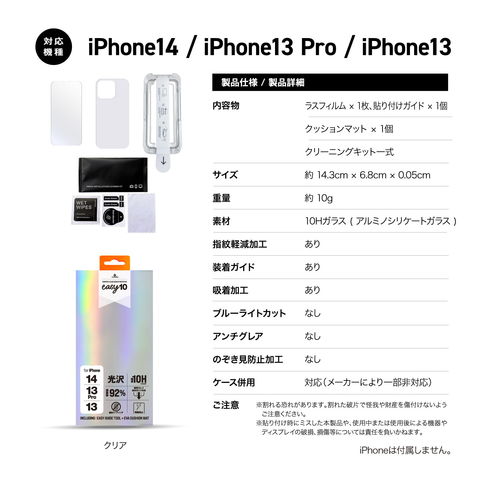 iPhone13 iPhone 13 Pro iPhone 14 ガラスフィルム 10H ガラス 簡単 ガイド 枠 保護フィルム 気泡レス フィルム アイフォン14 アイフォン13 対応 Corallo easy10