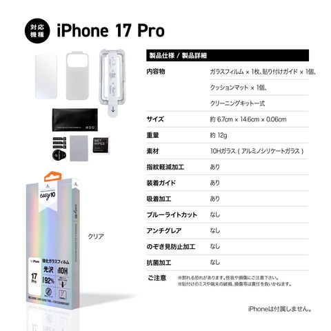 iPhone 17 Pro ガラスフィルム 気泡防止 10H ガラス 保護フィルム ラウンドエッジ 加工 ガイド付き フィルム iPhone17Pro アイフォン17Pro 対応 Corallo easy10