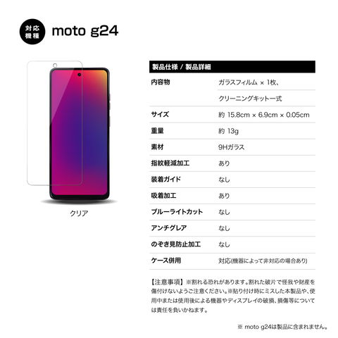 moto g24 フィルム 9H 強化ガラス 気泡防止 防 指紋 ガラスフィルム 指紋防止 スマホ 強化ガラス 保護フィルム モトローラ moto g24 5g 対応 Corallo NU GLASS