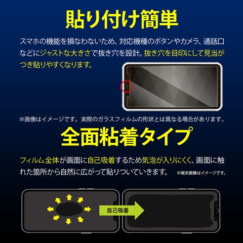 高品質な強化ガラスに特殊な粘着剤を使うことで、スマートフォンのディスプレイに自然に貼りやすく、本製品が割れてもガラスが飛散しにくい仕様です。