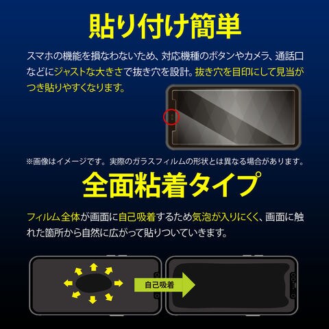スマホの機能を損なわないため、ボタンやカメラ、通話口などにジャストな大きさで抜き穴を設計。抜き穴を目印にして見当がつき貼りやすくなります。