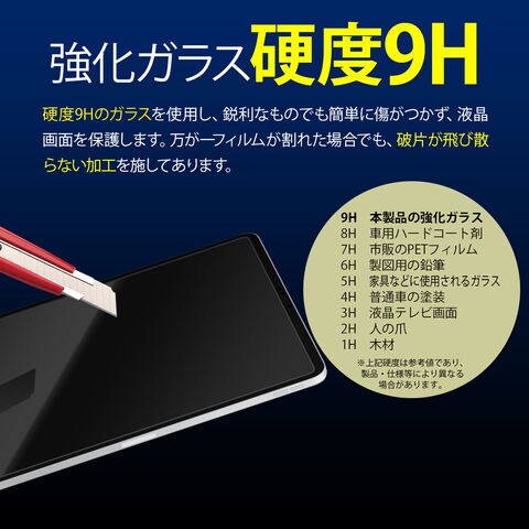 表面硬度 9H のガラスを使用し、ナイフ等の鋭利なものでも簡単に傷がつかず、ディスプレイを傷から保護します。
