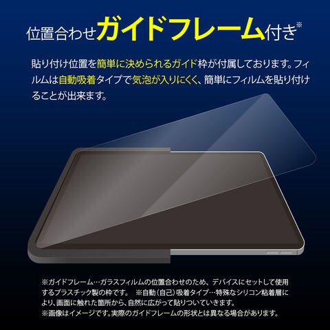 貼り付けガイドが付属し、簡単にガラスフィルムの位置合わせと、貼り付けができます。