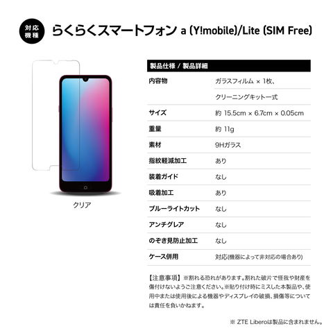 らくらくスマートフォン a らくらくスマートフォン Lite フィルム 9H 強化ガラス らくらくスマートフォン A401FC MR01 SIM Free 対応 Corallo NU GLASS