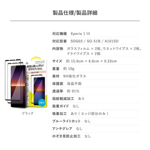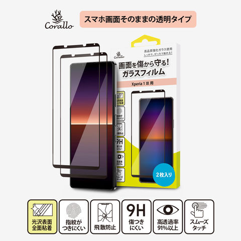 Xperia 1 III フィルム 2枚 9H ガラス 透明 気泡 0 防指紋 保護 ガラスフィルム [ エクスペリア 1 3 Xperia1 III SOG03 SO-51B A101SO ] Corallo NU EDGE GLASS