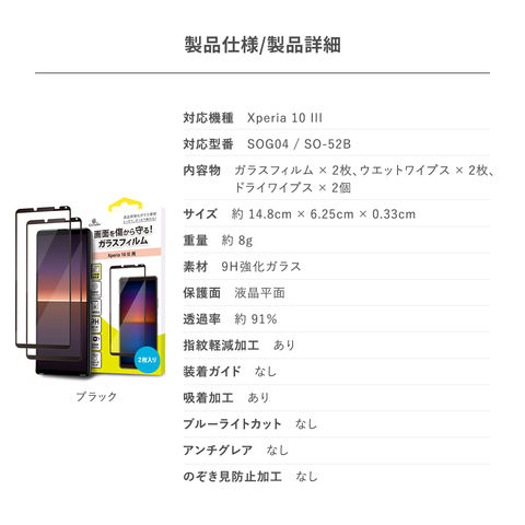 Xperia 10 III フィルム 2枚 9H ガラス 透明 気泡 指紋 防止 保護 ガラスフィルム [ エクスペリア 10 3 Xperia10III SOG04 SO-52B ] Corallo NU EDGE GLASS