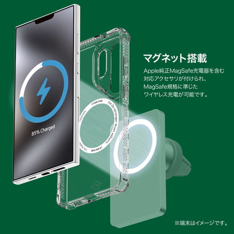 マグネット対応の充電器・アクセサリにしっかり装着。規格に準じたワイヤレス充電がスムーズに行えます。
