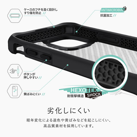 ケース内側には、独自のHEXOTECテクノロジー(ハニカム構造)を施し、衝撃から本体をしっかり保護します。