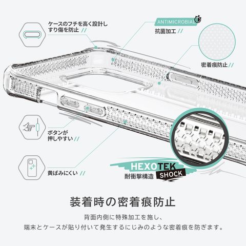 ケース内側には、独自のHEXOTECテクノロジー(ハニカム構造)を施し、衝撃から本体をしっかり保護します。
