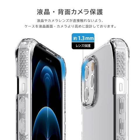 液晶やカメラレンズが直接触れないよう、ケースを液晶画面・カメラより高めに設計しております。