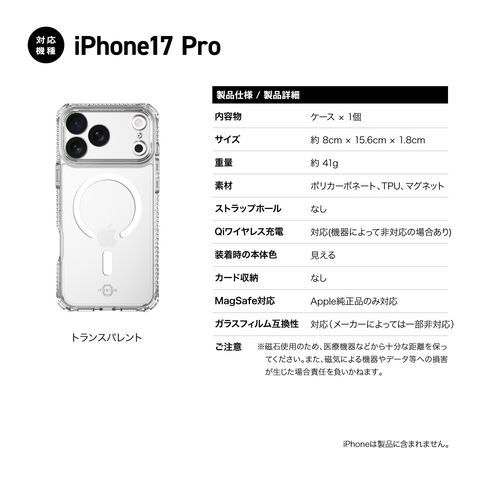 iPhone 17 Pro ケース MagSafe クリア 耐衝撃 ハイブリッド スマホケース マグセーフ iPhone17Pro アイフォン17Pro 対応 ITSKINS HYBRID R // CLEAR (MagSafe)