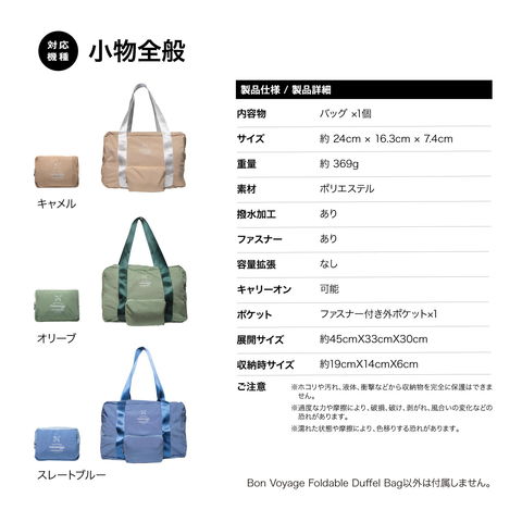 一泊二日 バッグ 旅行 レディース メンズ 大容量 収納 キャリーオン 軽量 トートバッグ 無地 おしゃれ 対応 MONOCOZZI Bon Voyage Foldable Duffel Bag