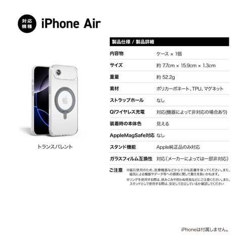 iPhone Air ケース クリア MagSafe 対応 回転 リング スタンド 付き 耐衝撃 スマホケース iPhoneAir アイフォンエアー 対応 MONOCOZZI ESSENTIALS Crystalのレビュー