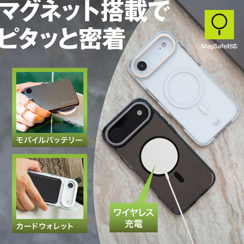 Apple純正MagSafe充電器や対応アクセサリが付けられ、規格に準じたワイヤレス充電が可能です。