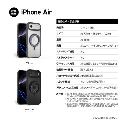 iPhone Air ケース クリア MagSafe 回転 リング スタンド ストラップホール 耐衝撃 スマホケース iPhoneAir アイフォンエアー 対応 MONOCOZZI #SAFEPROTECT