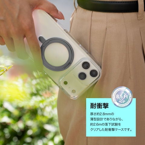 厚さ約2.8mmの薄型設計でありながら、約2.6mの落下試験をクリアした耐衝撃ケースです。