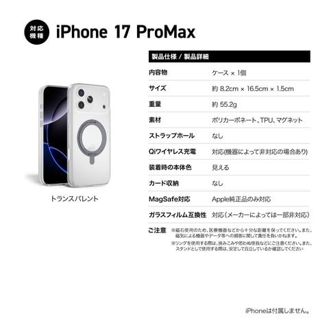 iPhone 17 Pro Max ケース クリア MagSafe 対応 リング スタンド 耐衝撃 スマホケース iPhone17ProMax アイフォン 17ProMax 対応 MONOCOZZI ESSENTIALS Crystal