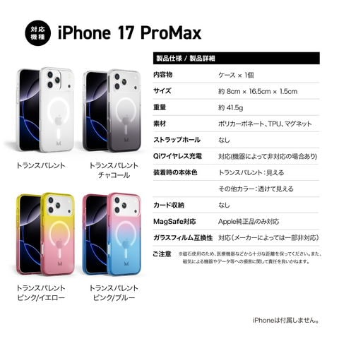 iPhone 17 Pro Max ケース MagSafe 対応 耐衝撃 クリア スマホケース マグセーフ 携帯ケース iPhone17ProMax アイフォン 17ProMax 対応 MONOCOZZI ESSENTIALS