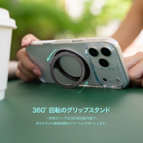 一体型のリングは360度回転可能で、持ちやすさも動画視聴もスマートにサポートします。