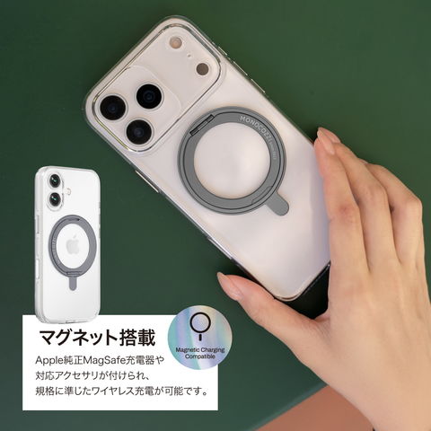 Apple純正MagSafe充電器や対応アクセサリが付けられ、規格に準じたワイヤレス充電が可能です。
